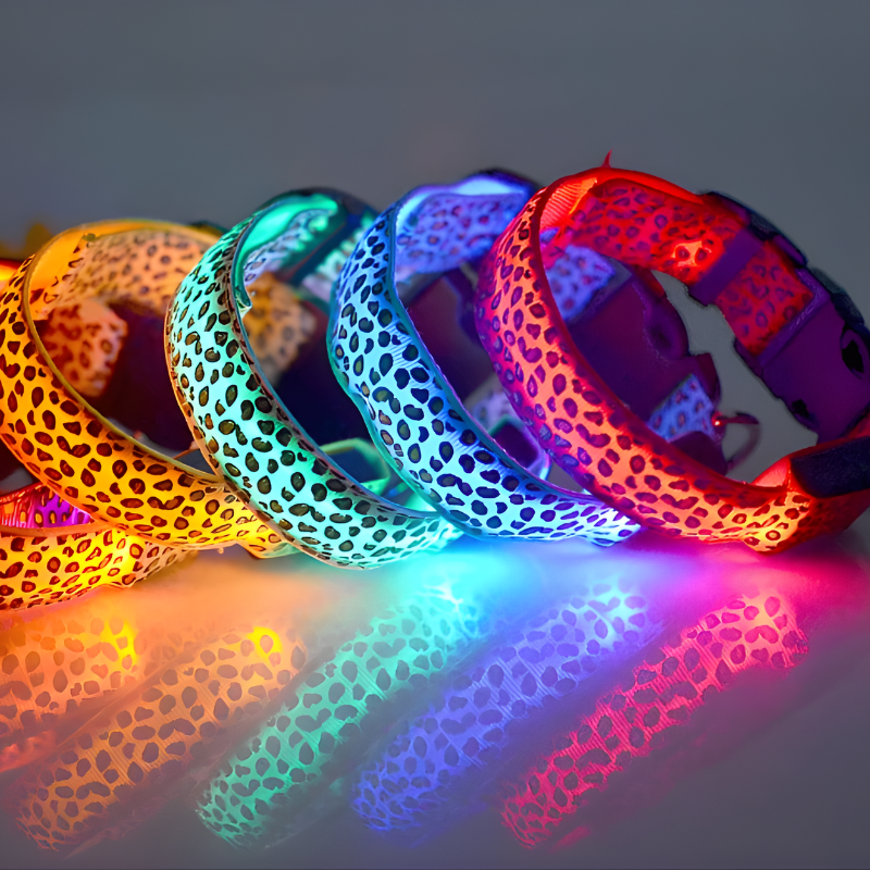 The LED collar glows and flashes in the dark — keeping you and your pet visible and safe during evening walks or outdoor adventures.